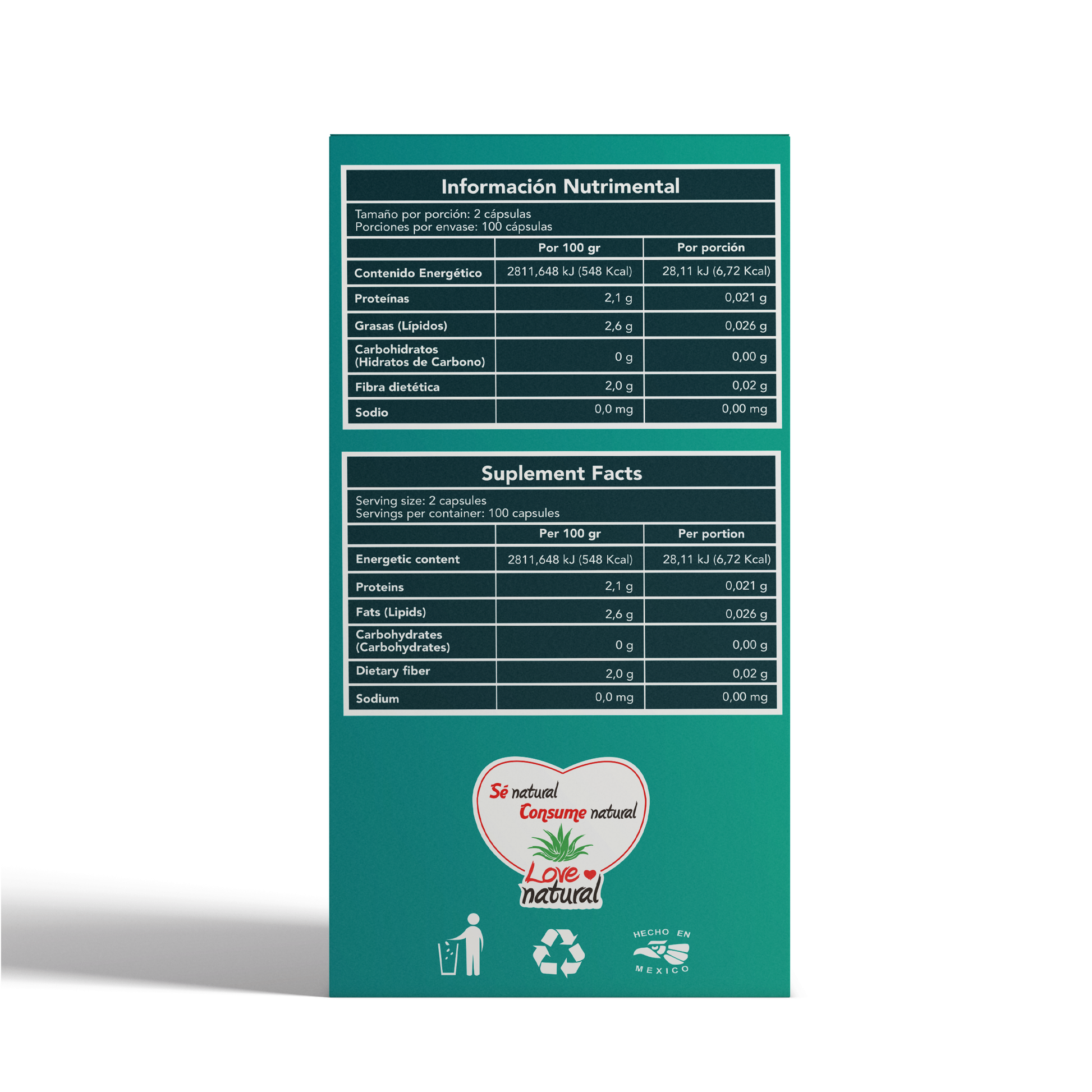 Caja/Frasco con 100 cápsulas de 500 mg c/u.