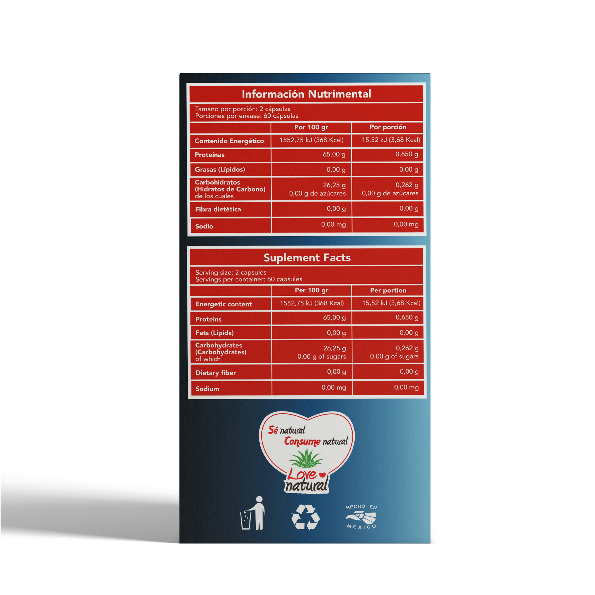 Caja/Frasco con 90 cápsulas de 500 mg c/u.